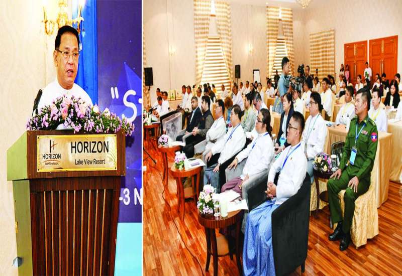 မြန်မာနိုင်ငံ မဲခေါင်မြစ်ဝှမ်းဒေသအတွင်း အဆိပ်အတောက်ဖြစ်စေသော ညစ်ညမ်းဓာတုပစ္စည်းများပါဝင်မှု ဆန်းစစ်လေ့လာခြင်း (MLC – Toxic)စီမံကိန်း၏ Final Completion Workshop ကို ယနေ့နံနက် ၉ နာရီတွင် နေပြည်တော်ရှိ KMA Hotel ၌ ကျင်းပပြုလုပ်ရာ သယံဇာတနှင့်သဘာဝပတ်ဝန်းကျင်ထိန်းသိမ်းရေးဝန်ကြီးဌာန၊ ပြည်ထောင်စုဝန်ကြီး ဦးခင်မောင်ရီ တက်ရောက်အဖွင့်အမှာစကားပြောကြားသည်။