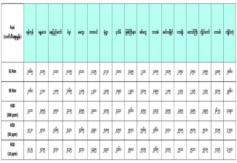 ရန်ကုန်မြို့နှင့်မန္တလေးမြို့အတွက် ရည်ညွှန်းလက်ကားဈေးနှုန်းများနှင့် ပြည်ထောင်စုနယ်မြေ နေပြည်တော်၊ တိုင်းဒေသကြီး/ပြည်နယ် မြို့တော်များအတွက် ရည်ညွှန်းလက်လီဈေးနှုန်းများ