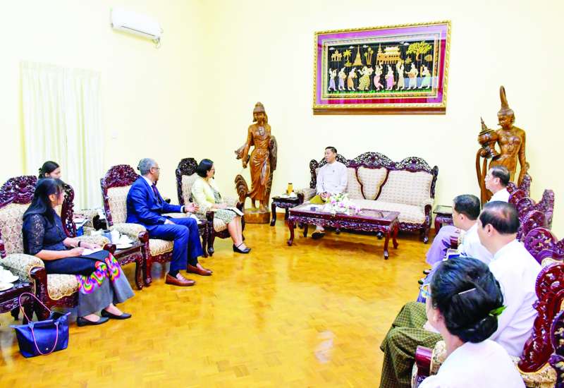 လူမှုဝန်ထမ်း၊ ကယ်ဆယ်ရေးနှင့် ပြန်လည်နေရာချထားရေးဝန်ကြီးဌာန ပြည်ထောင်စုဝန်ကြီး ဒေါက်တာစိုးဝင်းသည် ကုလသမဂ္ဂဒုက္ခသည်များ ဆိုင်ရာမဟာမင်းကြီးရုံး (UNHCR) ၏ မြန်မာနိုင်ငံ ဆိုင်ရာကိုယ်စားလှယ် Ms. Noriko Takagi ဦးဆောင်သောအဖွဲ့အား ယနေ့နံနက်ပိုင်းတွင် အဆိုပါဝန်ကြီးဌာနဧည့်ခန်းမ၌ လက်ခံတွေ့ဆုံသည်။