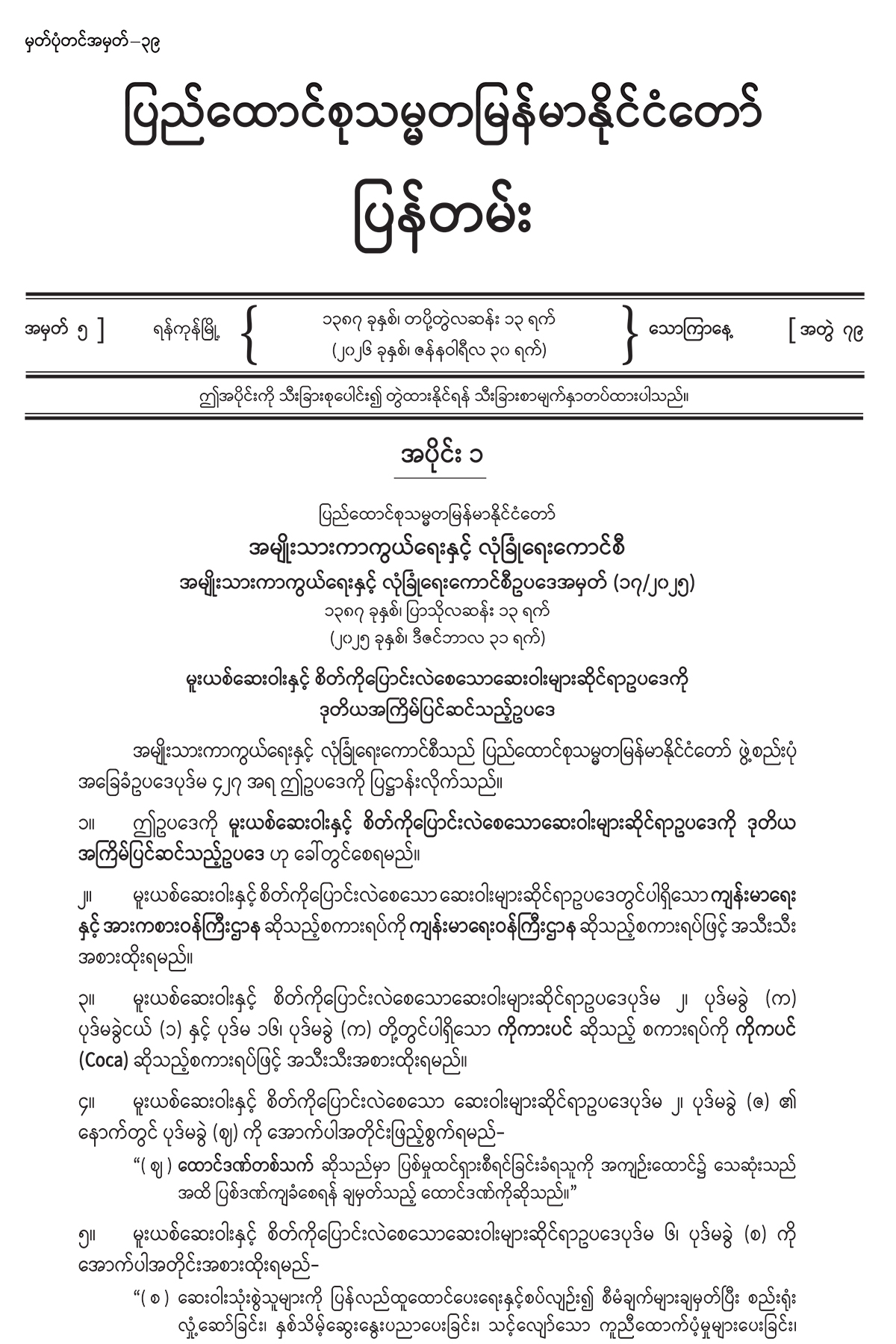 ပြည်ထောင်စုသမ္မတမြန်မာနိုင်ငံတော်ပြန်တမ်းများကို ပြန်ကြားရေးဝန်ကြီးဌာန၊ ပုံနှိပ်ရေး နှင့် ထုတ်ဝေရေးဦးစီးဌာနက ထုတ်ဝေဖြန့်ချိလျက်ရှိရာ ၂၀၂၆ ခုနှစ်၊ ဇန်နဝါရီလ ၃၀ ရက် ထုတ် အတွဲ (၇၉)၊ အမှတ် (၅) ပြန်တမ်းစာစောင်ကို စာပေဗိမာန်စာအုပ်အရောင်းဆိုင် များမှတစ်ဆင့် စတင်ဖြန့်ချိရောင်းချနေပြီ ဖြစ်ပါသည်။ ယခုအပတ်ထုတ် မြန်မာနိုင်ငံတော် ပြန်တမ်းတွင် အပိုင်း (၁)၊ အပိုင်း (၂) နှင့် အပိုင်း (၄) တို့ ပါရှိပါသည်။