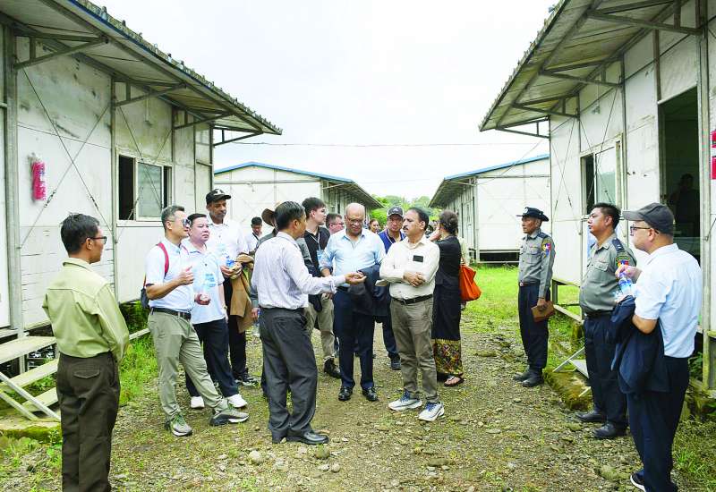 ရခိုင်ပြည်နယ် တည်ငြိမ်အေးချမ်းရေးနှင့် ဖွံ့ဖြိုးတိုးတက်ရေးဆိုင်ရာ လုပ်ငန်းများ ညှိနှိုင်းပေါင်းစပ်ရေးကော်မတီ ဒုတိယဥက္ကဋ္ဌ (၁) ပြည်ထောင်စုအစိုးရအဖွဲ့ရုံး ဝန်ကြီးဌာန(၂) ပြည်ထောင်စုဝန်ကြီး ဦးကိုကိုလှိုင် ဦးဆောင်သည့် မြန်မာနိုင်ငံအခြေစိုက် သံရုံးများမှ သံရုံးအကြီးအကဲများနှင့် သံတမန်များသည် ဌာနဆိုင်ရာ တာဝန်ရှိသူများနှင့်အတူ ယနေ့နံနက်ပိုင်းတွင် စစ်တွေမြို့မှ တပ်မတော်ရဟတ်ယာဉ်များဖြင့် ထွက်ခွာကြပြီး မောင်တောမြို့နယ် တောင်ပြိုလက်ဝဲ ပြန်လည် လက်ခံရေးစခန်းသို့ ရောက်ရှိကြသည်။